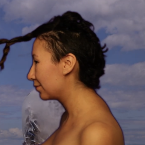 Kristin is a former competitive jingle dress and fancy shawl dancer. She performed for the camera by first drawing a Canadian flag in the sand at the beach. The flag, a potent national symbol, becomes the stage for Kristin’s act of reclamation: as she dances on the image of the flag, her footsteps gradually erase the maple leaf, symbolically undoing a legacy of oppressive nationalism that once threatened to erase First Nations cultural forms such as dance.