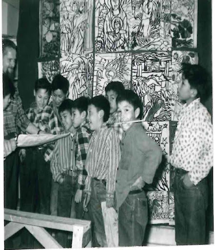 3)Gathering Through Exhibitions: We look to how when we gather around artworks in the context of exhibitions and related programming, this creates opportunities to both witness the creativity and resilience of children who attended these schools and the continued impact of these schools on Survivors and their families.