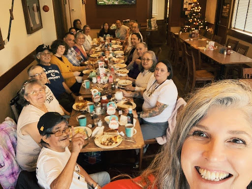 Photograph above: Alberni Residential School Society members enjoy a Christmas breakfast together at Smitty’s in Port Alberni, B.C. 2023.