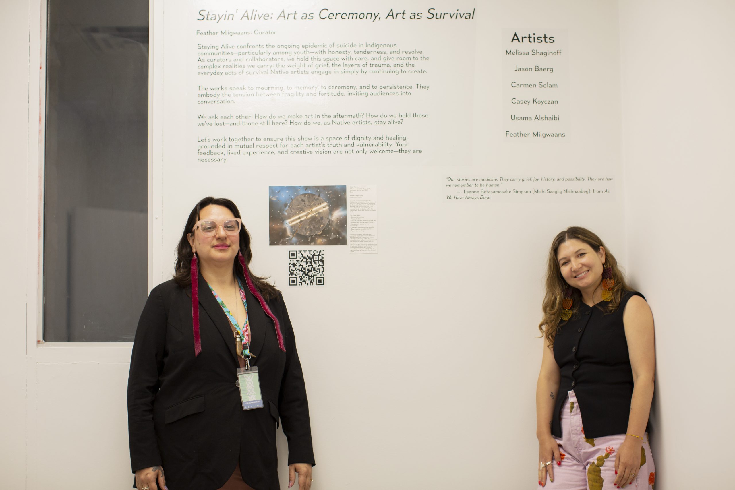As a curator and writer specializing in contemporary Indigenous art, she is committed to creating spaces that honor Native voices, hold space for grief and resilience, and confront the layered impacts of colonial violence. Her curatorial work is deeply rooted in Anishinaabe values of kinship, responsibility, and cultural continuity—seeking to amplify community narratives of strength, care, and creative persistence.