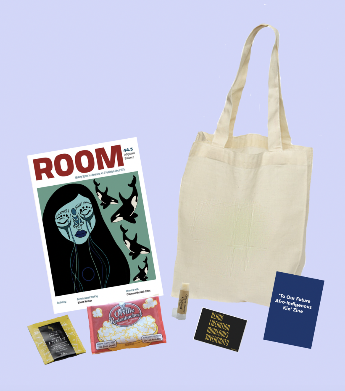 - 1 copy of ROOM 44.3 Indigenous Brilliance, edited by Karmella Cen Benedito De Barros, Emily Dundas Oke, Jessica Johns, Patricia Massy, and jaye simpson.