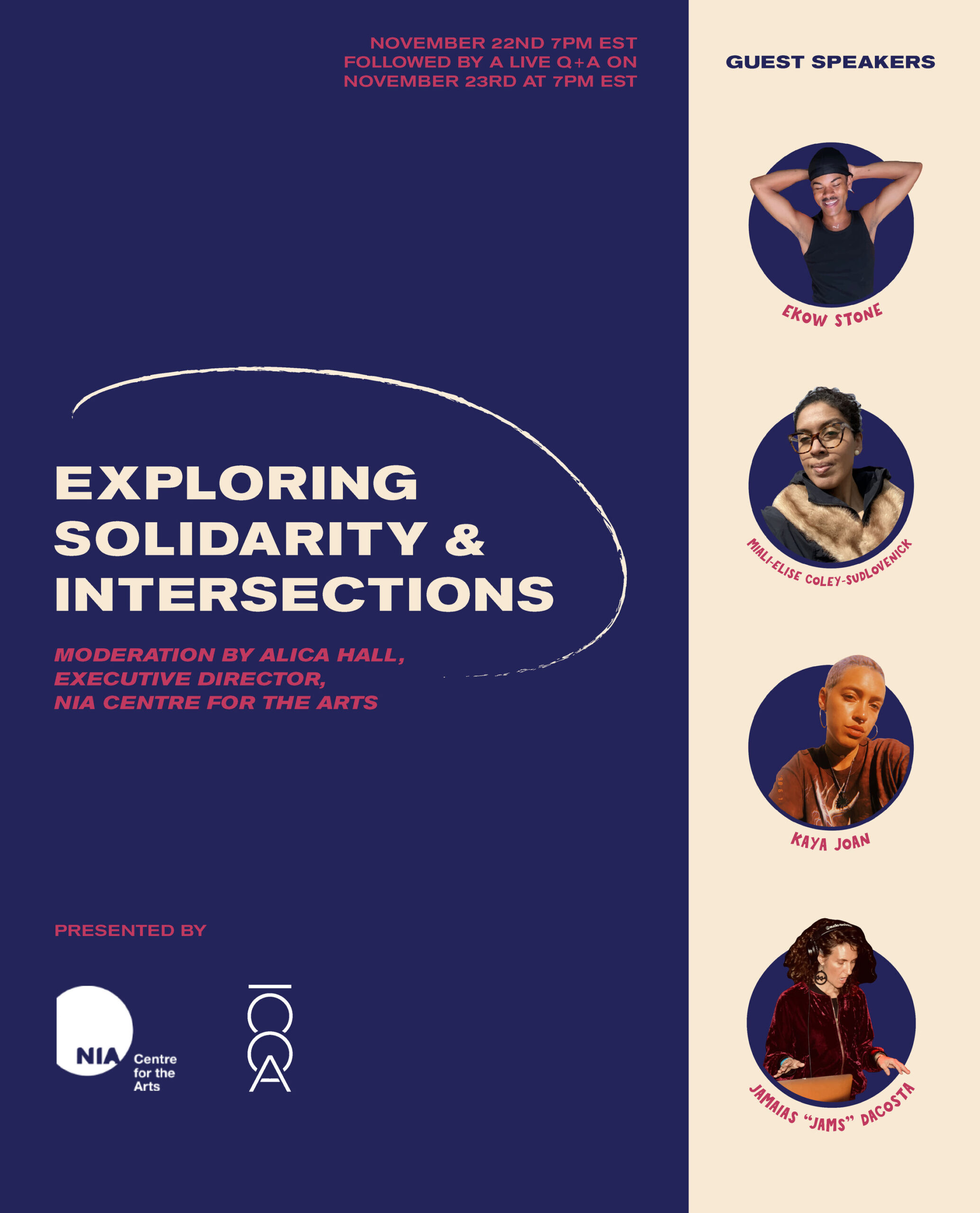 ICCA and Nia Centre will host an intimate conversation that explores the individual artistic practices of four Afro-Indigenous/Mixed-race artists, while also exploring solidarity, (hyper)visibility, and the nuances and complexities in-between. The goal of this dialogue is to create space for an open conversation about how each artist is able to meaningfully engage with both their artistic practices and their communities, and the implications these practices have towards (hyper)visibility and solidarity, both in the past, in the present, and in the future. This panel will be presented live on the ICCA YouTube channel and Vimeo account, as well as Nia Centre’s social media. A live Q & A with the artists will follow the panel on the Nia Centre’s facebook page.