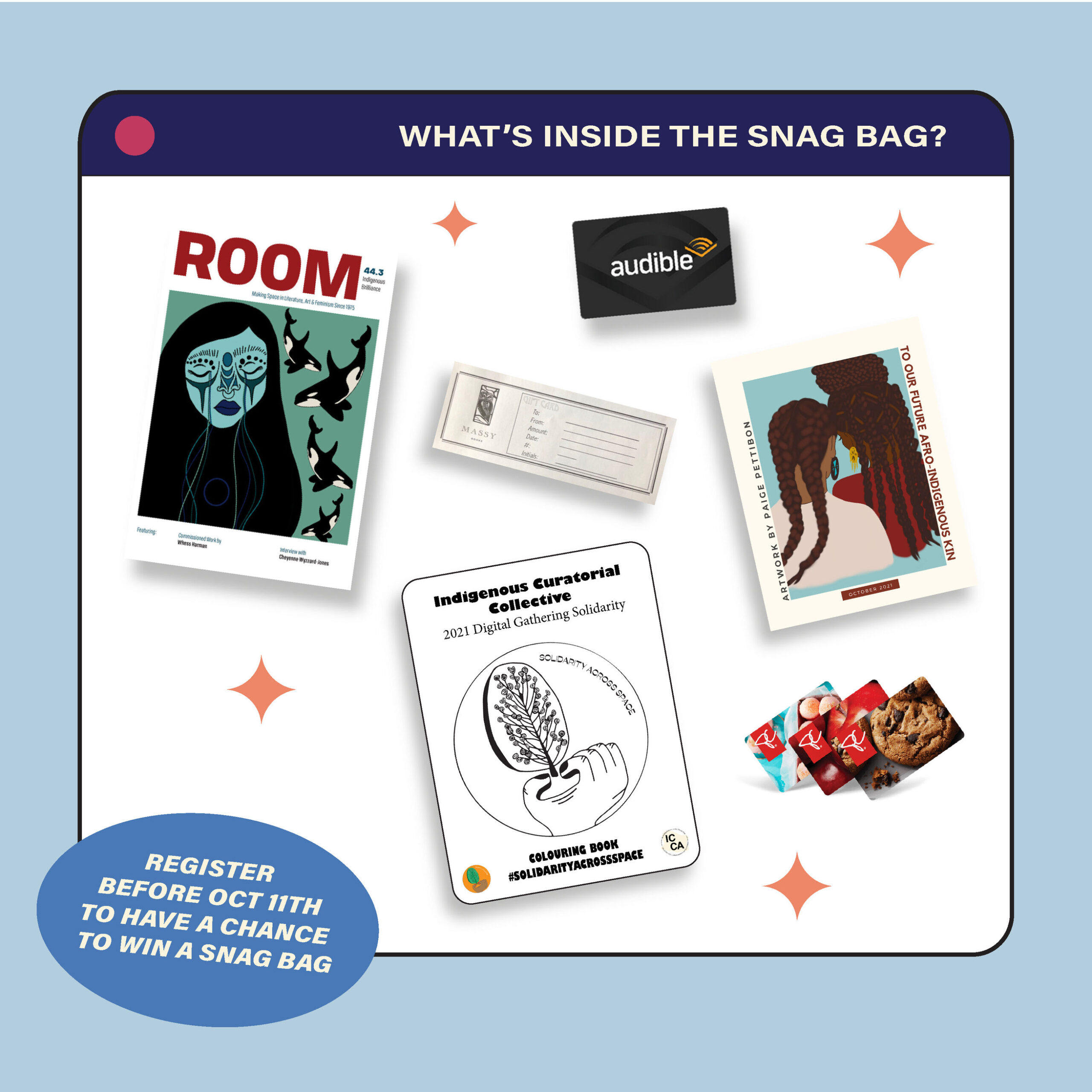 Nous offrons un Snag Bag numérique à 100 participant.e.s qui s’inscrivent au Rassemblement 2021 ! Le tirage aura lieu le 12 octobre et vous recevrez tous vos cadeaux via votre adresse courriel — sauf votre copie du Magazine Room, que vous recevrez par la poste.