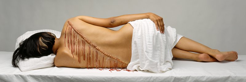 Rebecca Belmore, Fringe, 2008, Cibachrome transparency in fluorescent lightbox, 815 x 2448 x 167 mm, National Gallery of Canada. In Rebecca Belmore: Facing the Monumental, Art Gallery of Ontario, 2018. © Rebecca Belmore